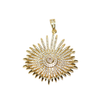 Ses rayons dorés captent la lumière et réchauffent le décolleté, comme un rappel constant de la force intérieure.