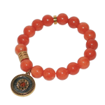 Chaque bracelet unit la force vibratoire des pierres naturelles à une breloque dorée fleurie, sertie d’un cœur rouge profond — symbole du karma bienveillant et de la lumière intérieure.