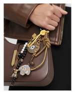 Le bijou de sac Sacred Glow est composé de perles d’onyx noir, pierre d’ancrage et de protection. Symbole de force intérieure, elle éloigne les énergies négatives et favorise la confiance en soi.