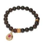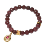 • Breloque en forme de goutte dorée, ornée d’un cristal rubis.