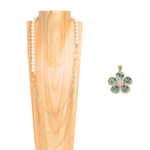 Ce sautoir dualité associe une chaîne dorée raffinée à une rangée de pierres naturelles, surmontée de la breloque Big Flower Irisée, symbole d’équilibre, d’harmonie et de renaissance marine.