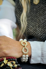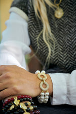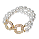 Ses doubles rangs de perles nacrées reflètent la lumière avec une élégance intemporelle, tandis que le fermoir central, pavé de cristaux, symbolise le lien indestructible entre soi et l’autre — entre ce que l’on montre et ce que l’on garde secret.