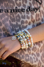 Le bracelet Pure Diamond Irisé dévoile une harmonie de perles aux reflets argent, prune et nacre, subtilement changeants selon la lumière.