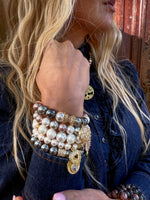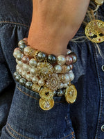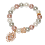 Le bracelet Pure Diamond Poudré marie la délicatesse des perles rosées et argentées à la brillance d’un charm solaire serti de cristaux.