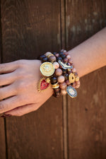 Chaque bracelet est orné d’un cœur rouge flamboyant bordé de rayons dorés — symbole du feu intérieur, de la force du désir et de la lumière des émotions.