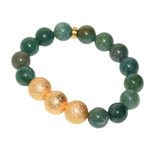 Chaque bracelet associe la force des pierres naturelles à la touche précieuse de perles dorées scintillantes — symbole de réussite, de lumière et d’assurance.