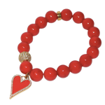 ✨ Breloque cœur rouge incrustée de cristaux, montage élastique haute résistance, perles naturelles 12 mm.